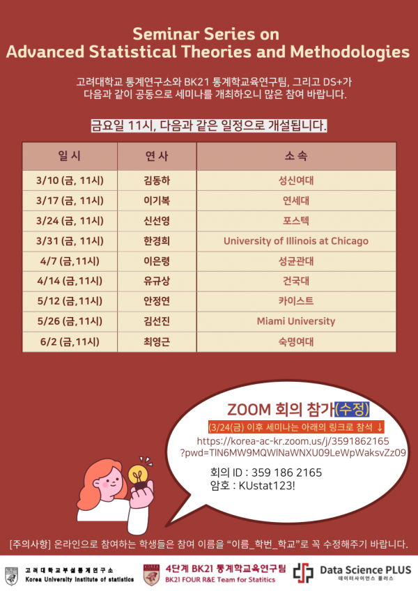 (zoom 링크 수정)Seminar Series on Advanced Statistical Theories and Method…